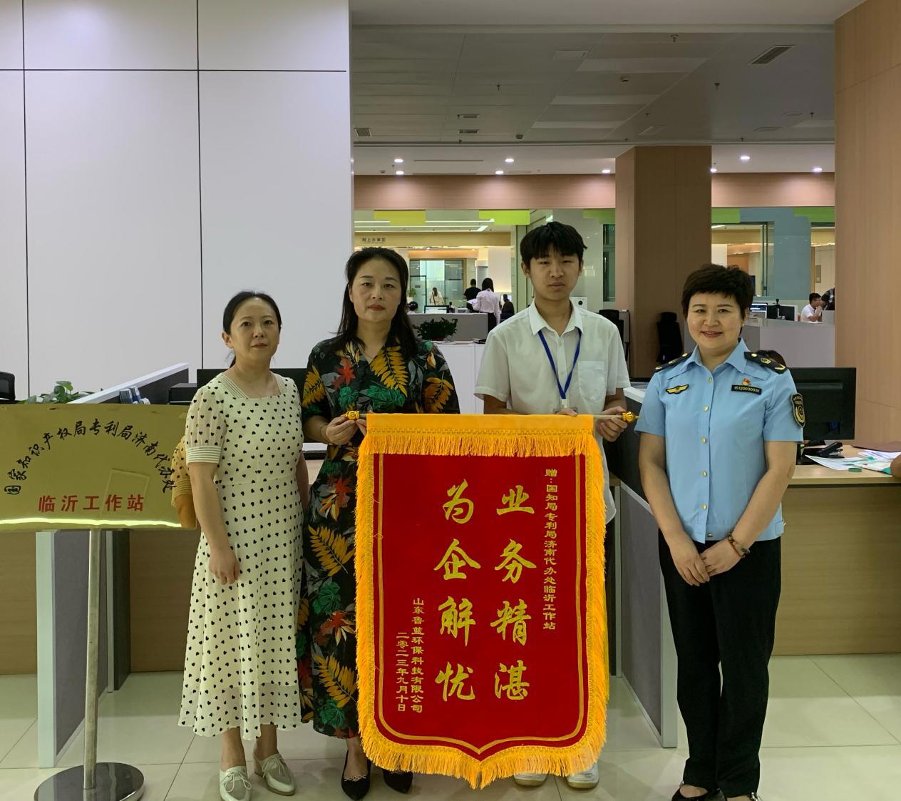 为表达深深的谢意,该企业特赠予临沂工作站一面锦旗,上书“业务精湛 为企解忧”八个金光闪闪的大字,这既是对工作站人员辛勤付出的高度认可,也是对他们高效、无私服务的最佳赞誉。这只是临沂工作站众多服务实例中的一个缩影。自成立以来,该站始终坚持“服务至上,质量第一”的理念,已累计办理专利质押业务140件,专利许可备案业务7件,专利质押注销业务共57件,质押融资金额达17.7亿元,接待窗口及电话咨询服务达千余次。通过知识产权金融手段助力企业解决资金难题,极大地拓宽了企业的融资渠道。